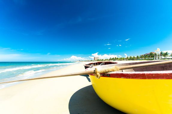 下午:游覽美溪海灘,美溪海灘是位于峴港東部市郊的一處公共海灘,距離皇冠假日酒店約兩公里,常有當(dāng)?shù)厝撕陀慰驮诖诵蓍e。這個(gè)長達(dá)900米的海灘據(jù)說是根據(jù)沙灘的柔軟潔白細(xì)膩程度、交通便利程度、周邊的度假設(shè)施以及陽光日照、海灘大小、水上活動(dòng)的種類等因素綜合評(píng)價(jià)得出的。