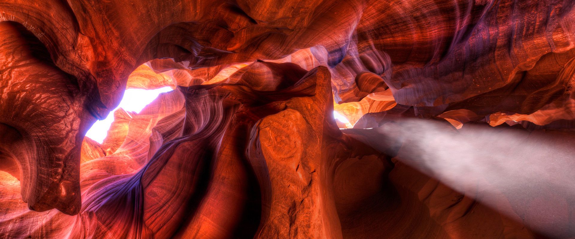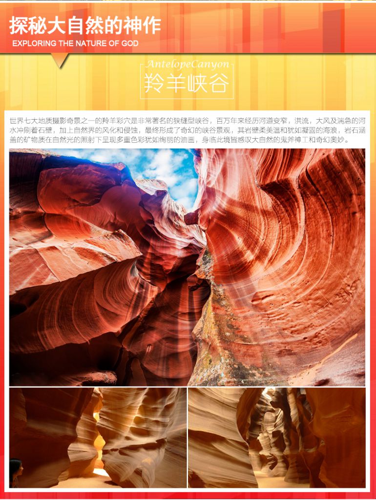 隨后抵達(dá)全世界至奇特的狹縫洞穴,世界十大攝影地點之一的下羚羊彩穴! 跟隨納瓦霍印第安向?qū)нM(jìn)入彩穴。彩穴巖壁融合了千百年來風(fēng)和洪流的侵蝕,呈波浪形,是大自然的抽像畫。一直以來彩穴都是納瓦霍印第安人靜坐深思的凈地,他們相信這里可以聆聽神的聲音。