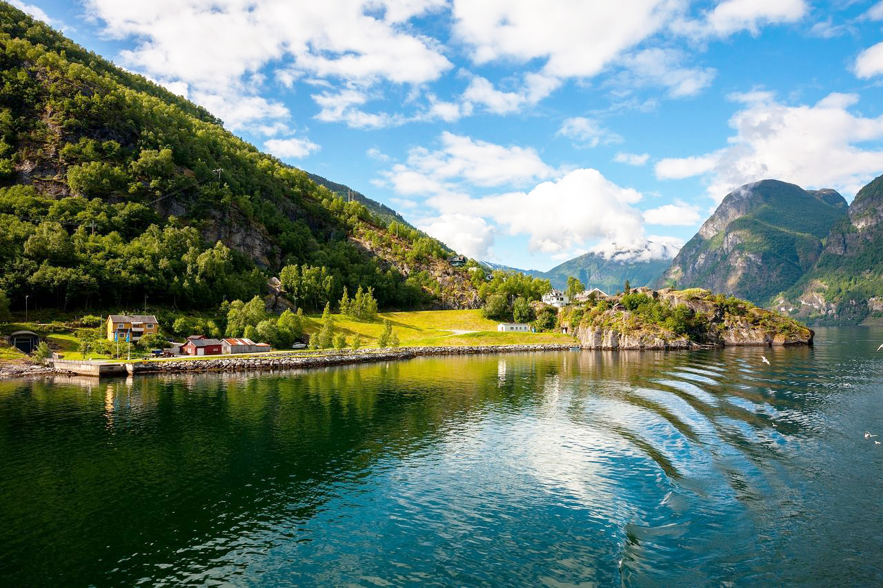 早上,前往弗洛姆展開一次經(jīng)典松恩峽灣之旅。抵達(dá)位于峽灣盡頭,隱藏在峽灣里的童話村莊—古德旺恩小鎮(zhèn)。挪威的西海岸擁有面積廣闊的峽灣地形,其中的松恩峽灣則是世界上最長(zhǎng)、水最深的峽灣。而在佛萊姆搭上去居德旺恩的游船游覽峽灣,可以帶你充分領(lǐng)略到峽灣的美景。