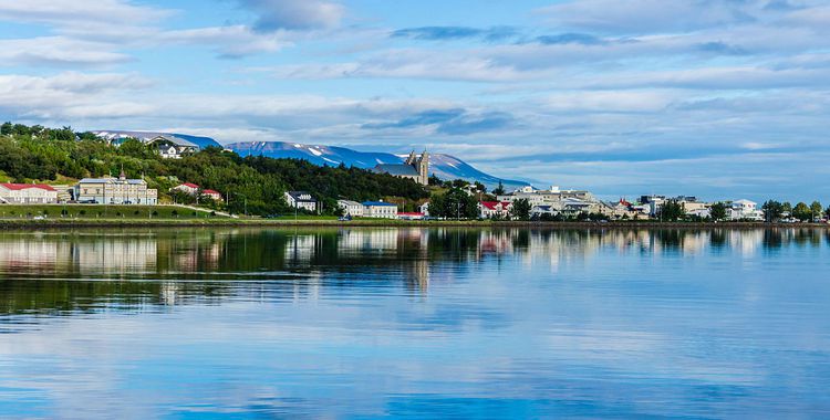 阿克雷里是僅次于雷克雅未克的冰島第二大城市,人口約1.5萬,號稱為冰島的“北方之都”,也是冰島北部大的港口。它位于冰島北部的埃亞峽灣的盡頭,地處北極圈邊緣。阿克雷里背依雪山,面臨碧湖,風(fēng)景秀麗。阿克雷里的午夜太陽可謂當(dāng)?shù)氐囊淮笃婢?,每年的六七月份,這里幾乎終日可見太陽。