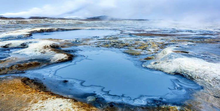 繼續(xù)向東,你會發(fā)現(xiàn)在公路右側(cè)有許多罅隙,大的有1~2米寬,小的也有一二尺,只見團(tuán)團(tuán)水汽從洞中沖出,使這一帶彌漫著硫磺味道的煙霧。較低處,則是泥漿翻滾,熱氣蒸騰,這是米瓦湖區(qū)的另一奇觀——泥漿噴泉Namaskard。