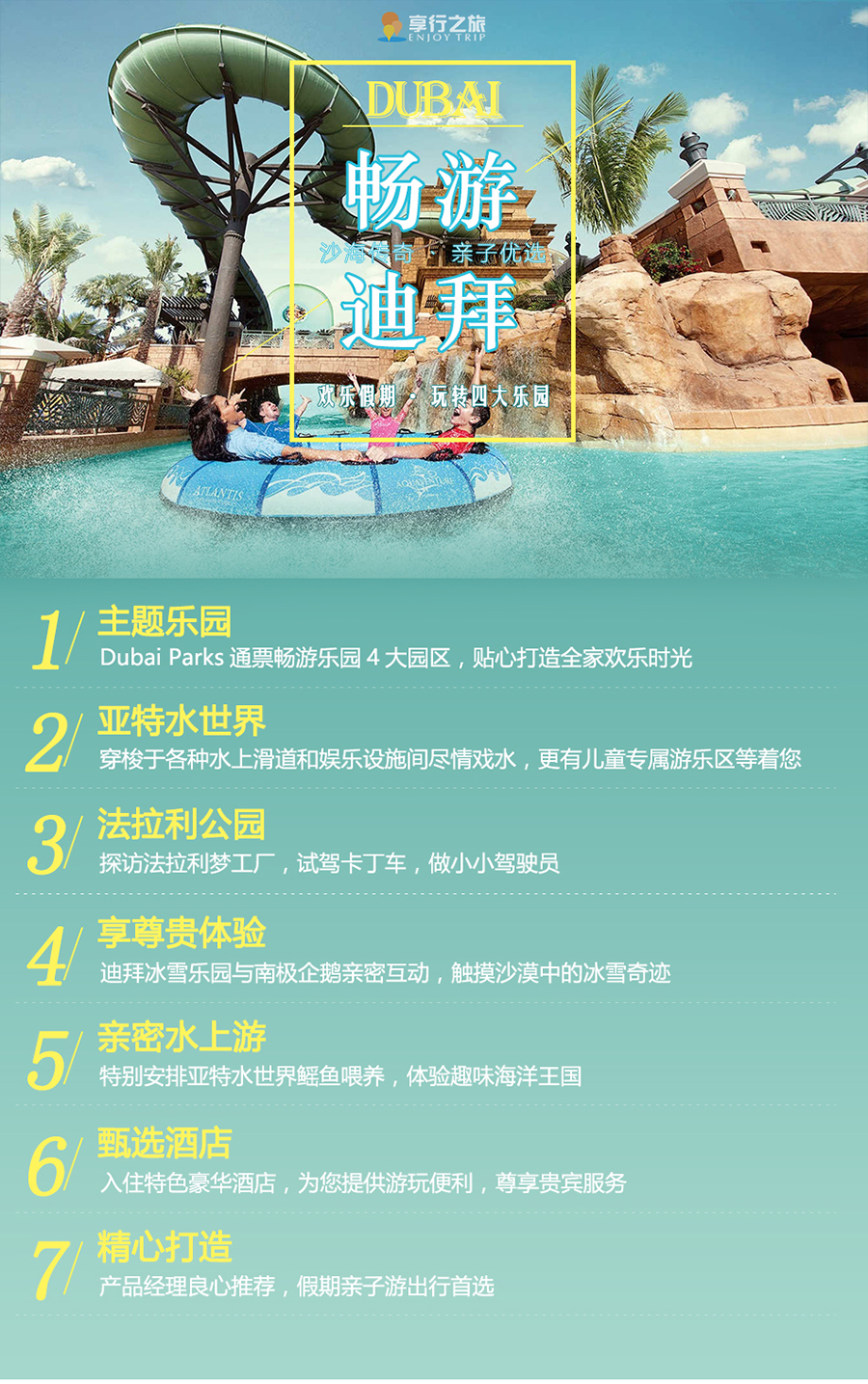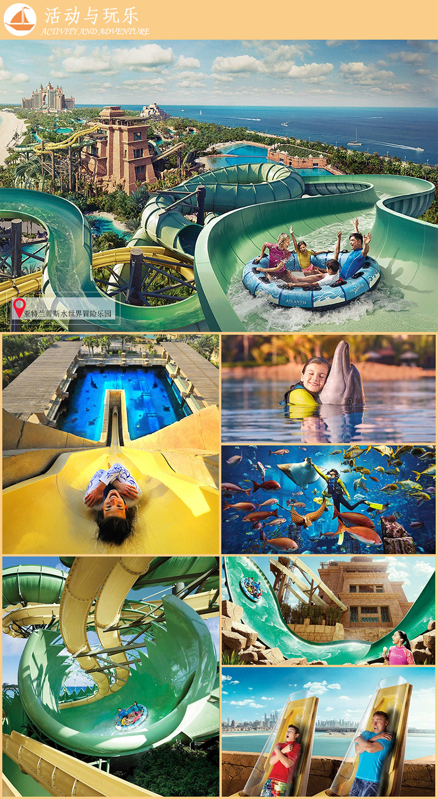 【酒店介紹】:亞特蘭蒂斯酒店位于迪拜棕櫚島的亞特蘭蒂斯度假酒店,自 2008 年開(kāi)業(yè)以來(lái),打造了一座名副其實(shí)的綜合性?shī)蕵?lè)度假酒店,今年酒店將開(kāi)放全新滑道項(xiàng)目,為游客提供更多刺激體驗(yàn),豐富暑期家庭親子游。亞特蘭蒂斯度假酒店豐富的水上娛樂(lè)項(xiàng)目是迪拜大型的海洋主題樂(lè)園,里面有 65000 尾海洋生物,包括旋渦式的鳳尾魚槽,繽紛的珊瑚,鯊魚等等,種類琳瑯滿目。也是歐洲及中東地區(qū)首屈一指的知名景點(diǎn),包括擁有占地 17 公頃(占度假村總面積37%)AQUAVENTURE 水上樂(lè)園、數(shù)個(gè)超大型淡水與海水泳池、天然礁湖、僅次于自然海洋的露天人工海域和一望無(wú)際的海灘;今年的新亮點(diǎn)則是全新滑道項(xiàng)目。若需前往海豚灣,請(qǐng)自費(fèi)前往,入住客人有優(yōu)惠價(jià)格