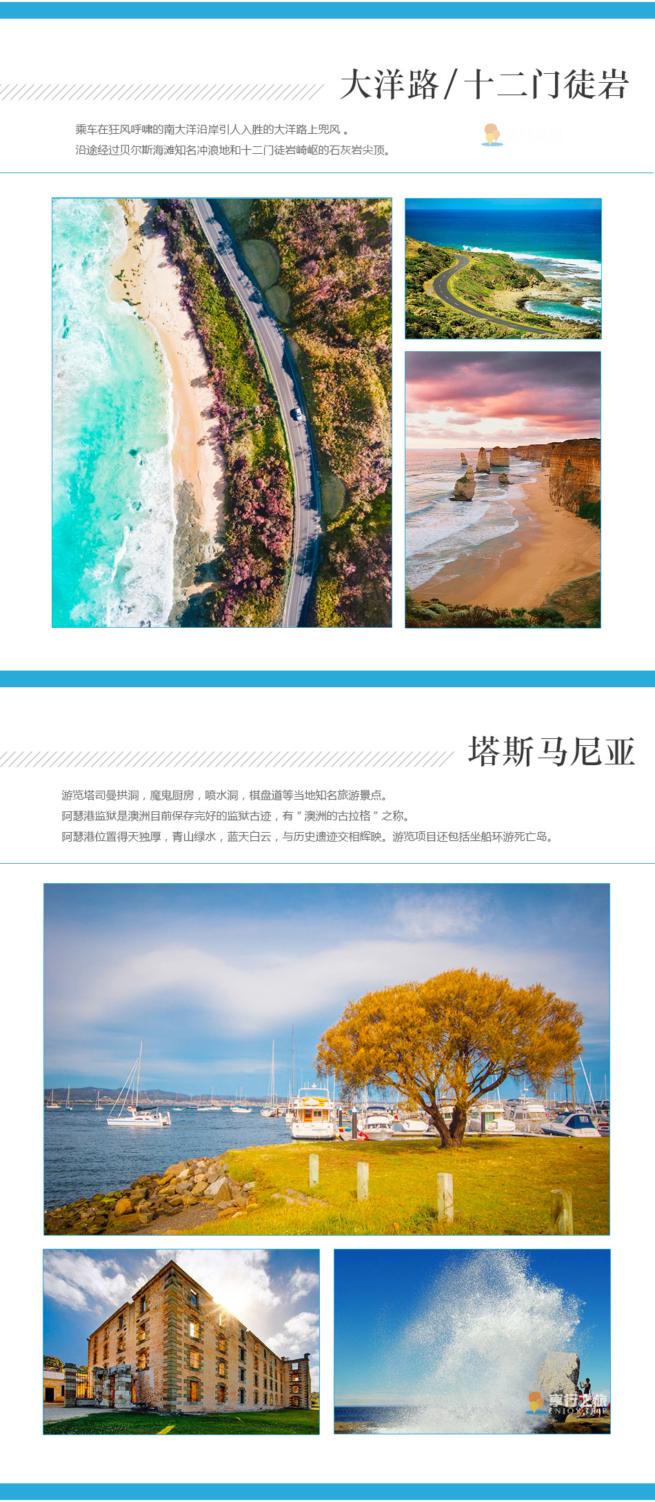 早上,乘車奔馳在大洋路的公路上,沿途可以欣賞到澳大利亞沿岸壯麗的海洋景觀,穿梭于奇石美景之中,還途經(jīng)維多利亞州的一些可愛小鎮(zhèn)以及海濱漁港。