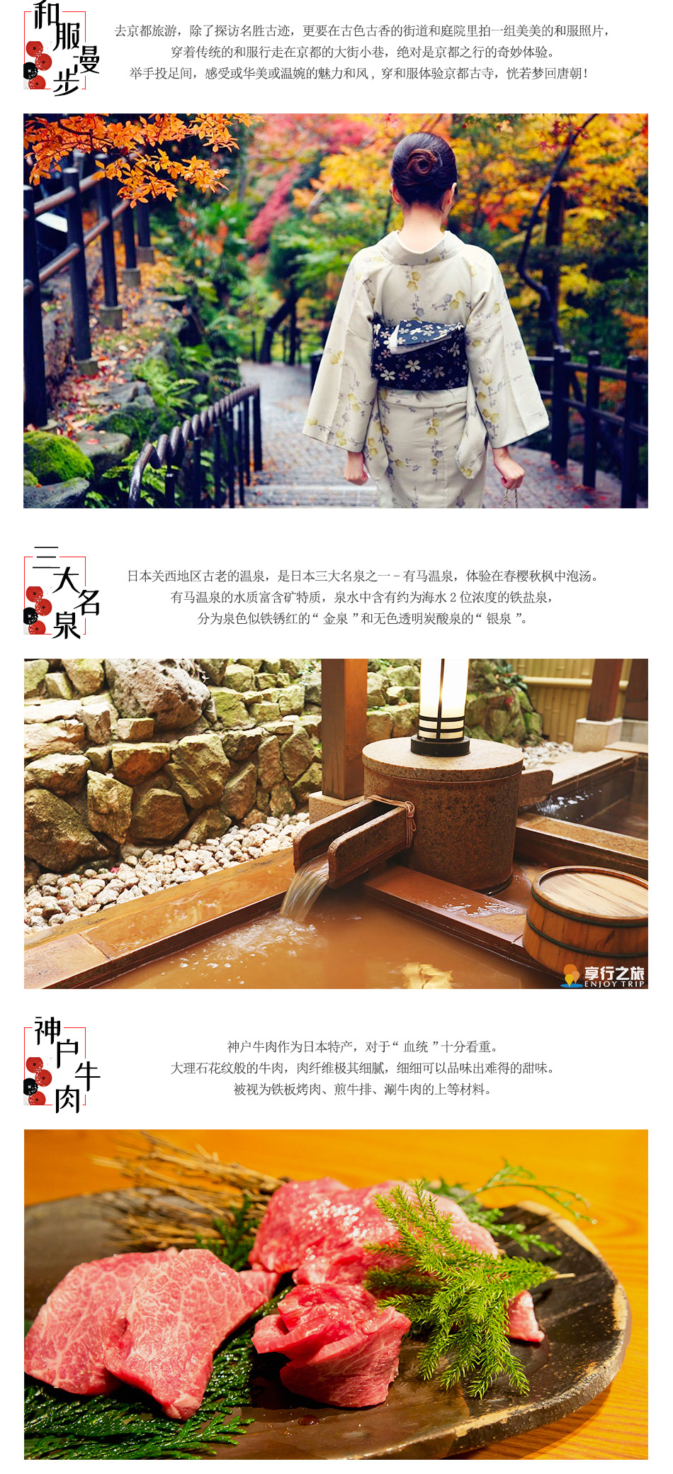 【和服體驗(yàn)】在京都這種熱門的地點(diǎn),不僅是酒店房間緊俏,還有和服體驗(yàn)的預(yù)定也會(huì)滿當(dāng)當(dāng)。京都這樣唐風(fēng)古意的地方,穿著和服拍照留戀,效果真的是棒棒噠。(和服租賃費(fèi)用已含)每個(gè)都可挑選自己心儀的和服,換上和服走在古街道,走在紅葉下, 真是詩意滿滿。和服租賃可選店鋪(櫻京,和凜,京?洛遊庵,岡本,),和服需提前預(yù)定,實(shí)際以預(yù)約為準(zhǔn)。