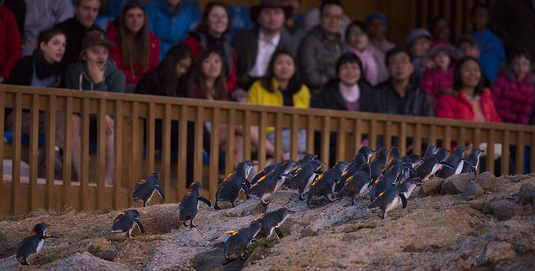 【企鵝歸巢】藍(lán)企鵝由岸邊回巢的可愛情景;