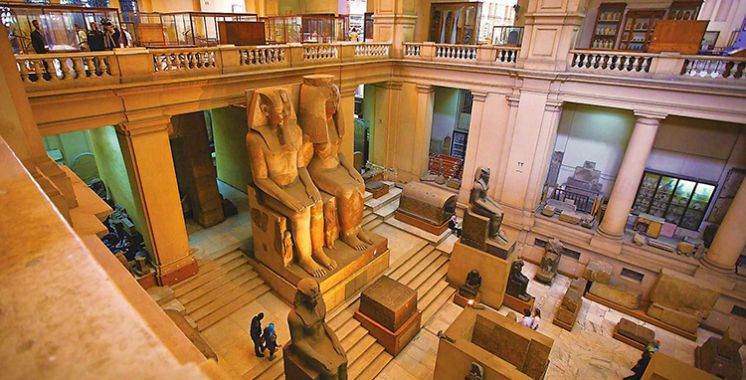 早餐后,前往參觀埃及博物館。這里有成千上萬(wàn)件令世界為之側(cè)目的珍寶。這幢出自法國(guó)建筑師之手的兩層樓建筑里收藏著近15萬(wàn)件展品,辟有百間以上的展示間。如果以每件展品參觀一分鐘來(lái)計(jì)算,得要差不多半個(gè)月以上才能參觀完畢,而這還不包括藏于地下室的約4萬(wàn)件出土文物。不過(guò)在所有的寶物當(dāng)中,最受關(guān)注的要數(shù)圖坦卡蒙法老的展示間,法老金碧輝煌的黃金葬禮面罩尤其令人印象深刻。不論何時(shí),展示間內(nèi)總是人聲鼎沸,好奇的人們都想一睹黃金面具的面目真相。