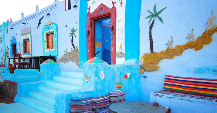 抵達(dá)后,前往坐上小渡輪橫渡尼羅河到【努比亞人村】,這里是一片色彩的海洋,每座房屋外墻全部被涂滿了各種顏色,與遠(yuǎn)處的青青農(nóng)田和搖曳生姿的椰棗樹(shù)構(gòu)成一幅生動(dòng)和諧的畫(huà)面。