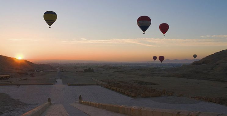 凌晨03:30酒店前往尼羅河西岸,【搭乘熱氣球】,在古老的底比斯上空,聆聽神廟內(nèi)遠古文明的呼喚。欣賞盧克索美麗的日出以及底下蜿蜒伸展的尼羅河和世界上神廟群。后返回酒店稍作休息,享用早餐。