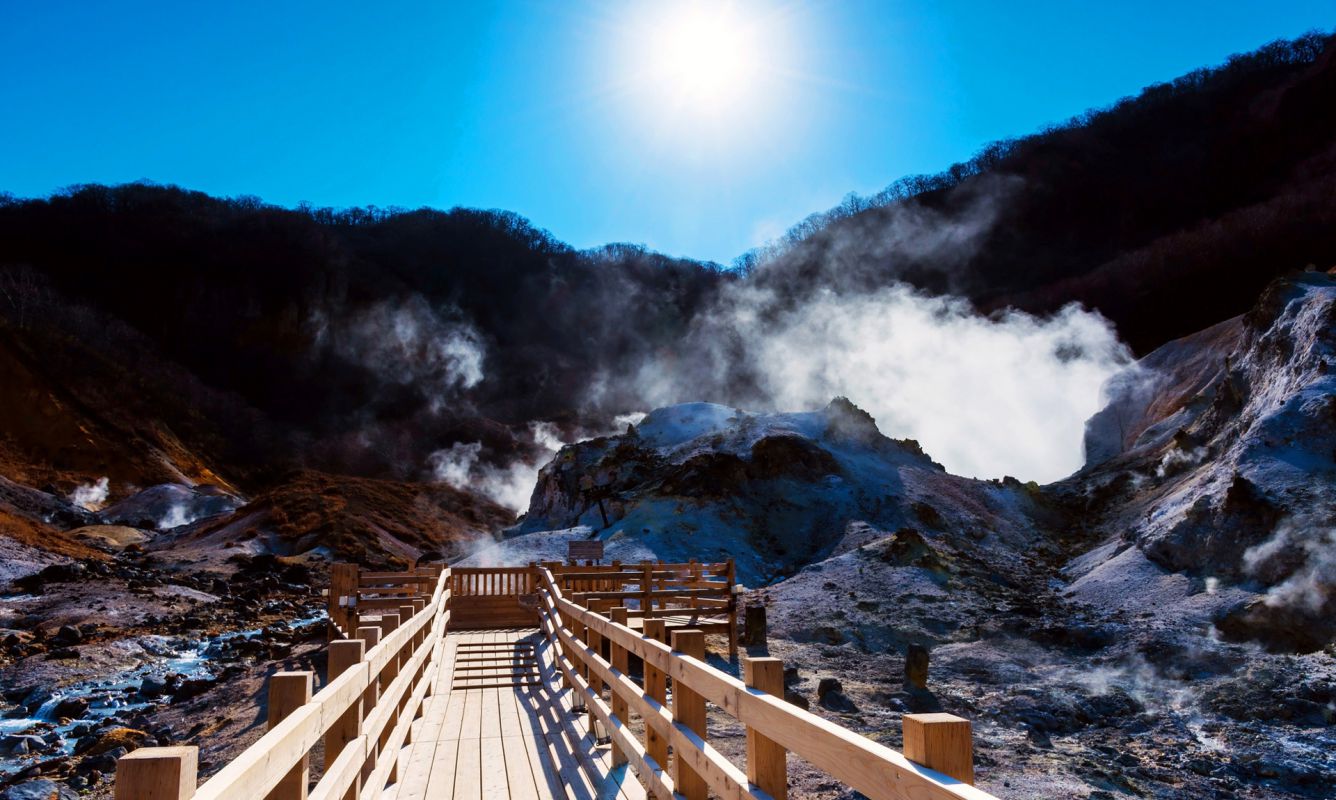 早餐后,前往北海道著名的休眠火山區(qū)--登別。游玩登別溫泉地獄谷,登別溫泉是北海道代表性的溫泉,其一大源頭便是登別地獄谷。所謂地獄谷,其實(shí)是一個(gè)火山口遺跡,常年彌漫著從灰黃色巖石表面向外噴出的火山氣體,周圍空氣中都充滿了濃烈的硫磺味,看起來就像是一幅地獄的景象。