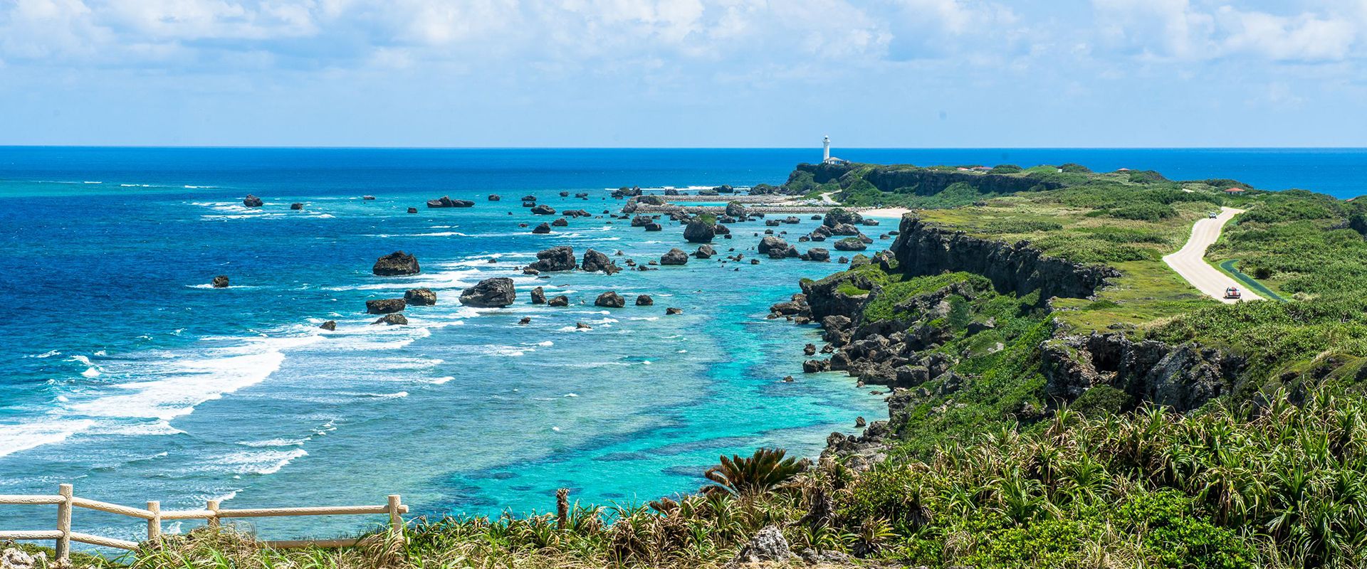 【宮古島】宮古島是宮古諸島的主島,位于沖繩縣沖繩本島西南約300公里的太平洋上。該島由隆起的珊瑚礁構(gòu)成,所以全島地勢(shì)較低海水清澈,適宜開展包括潛水在內(nèi)的各項(xiàng)海上運(yùn)動(dòng)。