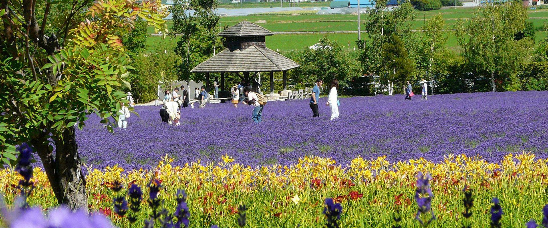 【彩香之里】在山坡斜面上的彩香之里從高處可以看到富良野市街的景色,以及與之平行的十勝岳山巒,景色非常遼闊。從初夏開(kāi)始冒出花芽的薰衣草共有七個(gè)種類(lèi),花期、花形和香氣都略有不同,尤其是淡粉紅花的品種十分特別,令人大開(kāi)眼界。