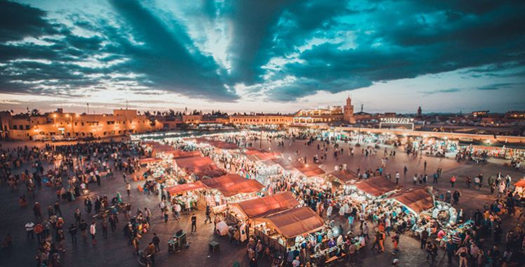 【不眠廣場】廣場位于馬拉喀什的老城區(qū),既是市民廣場也是市場。因為每到夜幕降臨,這里便熱鬧起來,各種食肆、貨攤搭滿整個廣場,耍蛇和各種傳統(tǒng)的演奏表演吸引很多游客,廣場四周則有一些兩三層小樓作為餐廳或咖啡吧。廣場不遠處就是庫圖比亞清真寺,抬頭可見。因此整個廣場區(qū)充滿了悠久的伊斯蘭氛圍。廣場的名字可能是指“世界盡頭的清真寺”之意,但是更為可信的一層解釋是指,“有一個大片空地、大廣場在前面的清真寺”。
