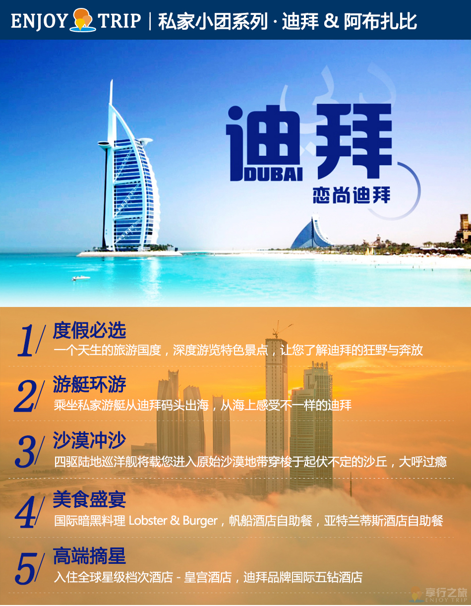 【哈利法塔(迪拜塔)】下午登上迪拜塔目前開放148層,一邊品嘗美味吃食,一邊欣賞壯麗的沙海美景。之后閑逛購物中心-Dubai Mall,商場內(nèi)時時的折扣信息,一定會讓您挑選到滿意的名品。