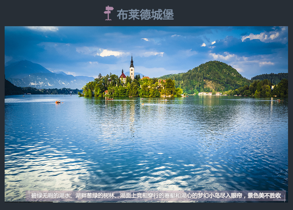 【布萊德城堡】站在布萊德城堡上,布萊德湖碧綠無暇的湖水、湖畔蔥綠的樹林、湖面上競相穿行的賽艇和湖心的夢幻小島盡入眼簾,景色美不勝收。