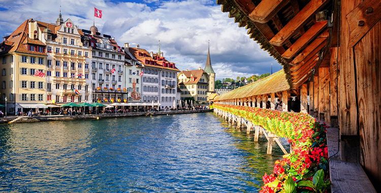 【教堂木橋】(游覽時間約15分鐘)它是歐洲古老的有頂木橋,橋的橫眉上繪有120幅宗教歷史油畫,沿途還可欣賞描述當年黑死病流行景象的畫作。