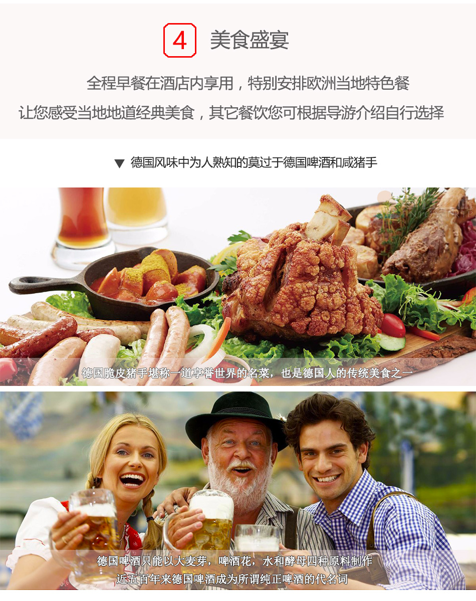 4.全程酒店早餐,含一餐德國豬肘特色餐(正餐)。