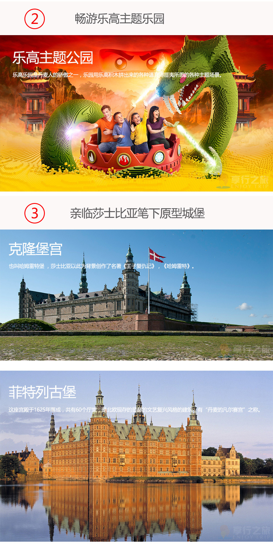 7.行程中所列景點首道大門票樂高樂園,菲德烈堡,哈姆雷特堡,安徒生故居,克里斯蒂安堡宮,丹麥國家歷史博物館。