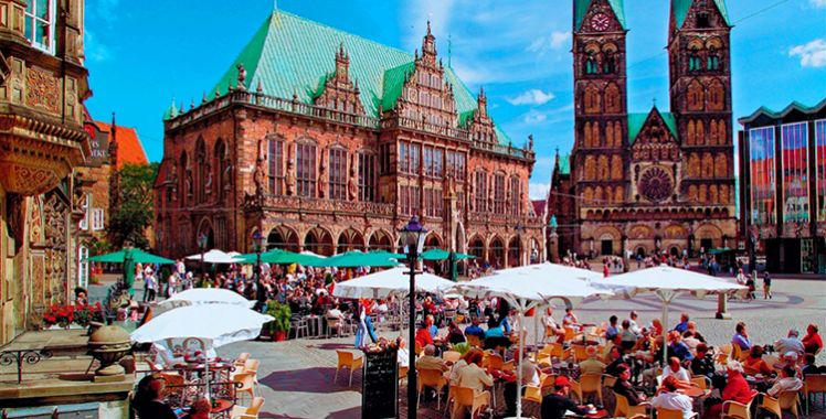 上午前往布萊梅Bremen,游覽市內(nèi)名勝:市政廳,而格林童話中《布萊梅城市音樂家》雕像亦是不可錯過的景點。布萊梅市政廳(Bremer Rathaus)連同它雄偉的文藝復(fù)興式立面和羅蘭石像(Roland)被列為聯(lián)合國教科文組織世界遺產(chǎn)。在不來梅市政廳的左側(cè),擺放著一尊2米高的銅制雕塑。著名的童話故事《不來梅的音樂家》的四位主人公們被以最吸引人的姿態(tài)雕塑出來。他們從上至下分別是主公雞、貓、狗和驢。整座城市中所處都可見到這四個小伙伴的身影,五月至十月的周日它們還會披上彩色的新裝,在 大教堂廣場現(xiàn)場為人們講述自己的故事。