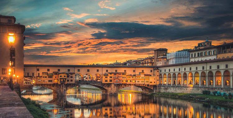 舊橋,又稱老橋、金橋,是但丁遇上心中所愛貝特莉絲的地方,但丁一共就只見過(guò)她兩次面,卻都是在這舊橋上發(fā)生的,為了表達(dá)對(duì)女子的深刻愛戀,他傾注精力寫出了《新生》。