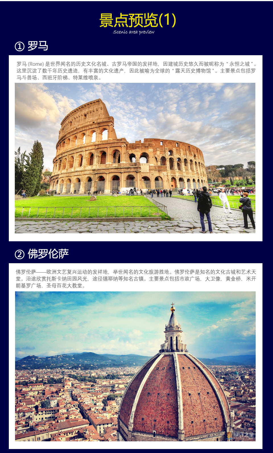 于指定航班時間前2.5小時到達出發(fā)地機場,自行辦理登機手續(xù),準備乘國際航班前往意大利首都---羅馬。與晚上抵達羅馬,由華人導游駕車接機后入住當地酒店休息。若航班到達時間較早,導游則安排當天在市區(qū)游覽。