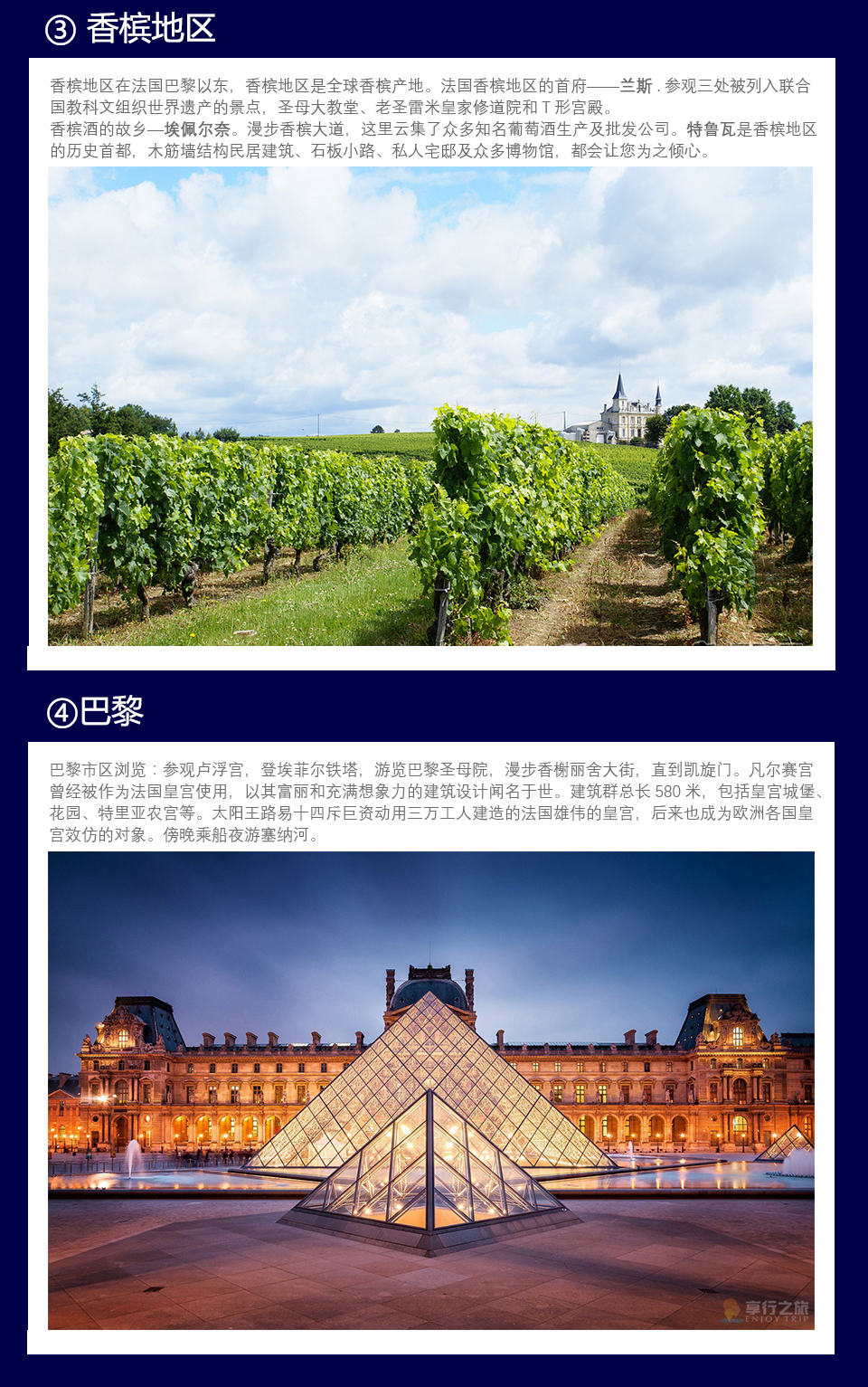 3、行程內所列餐食,法式特色餐1份,具體情況請見行程推薦/安排、飛機餐是否收費請參照航空公司規(guī)定。