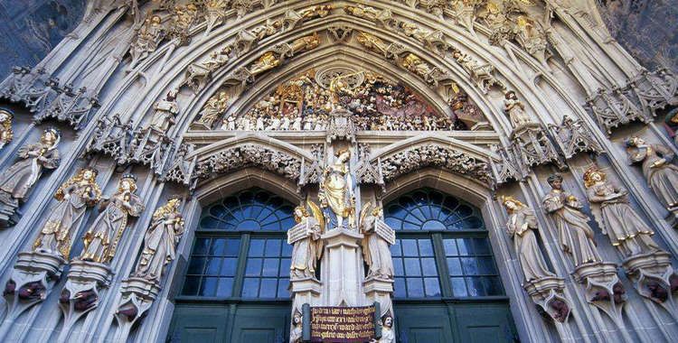 伯爾尼大教堂始建于1421年,是瑞士晚期哥特式建筑典范。內有著名的《最后的審判》(1495年)、建于1523年的刻花唱詩班廊檐、1421-1450年間完成的雕花天窗等它的100米高的尖塔頂是瑞士的最高建筑尖頂。從塔尖可以盡覽伯爾尼中世紀風情的街景。