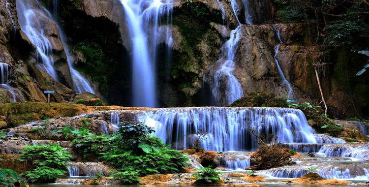 光西瀑布是瑯勃拉邦地區(qū)最大的瀑布,是由一個大瀑布和山下多個小瀑布組成的瀑布群,瀑布總高100米,從石灰石山峰傾瀉而下,在山下匯集成一個個水池,呈仙境般的碧藍色,如夢如幻。瀑布周圍森林茂密,郁郁蔥蔥,風景優(yōu)美。光西瀑布的最佳觀賞時間是11月雨季末期到4月旱季高峰期。雨季水量特別大,景色尤為壯觀。
