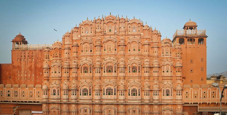 風宮是齋浦爾最有特色的地標性建筑。這個高聳的五層建筑看起來就像是一個精致的蜂巢。完工于1799年的風宮是拉其普特建筑藝術(shù)杰出的代表作,因其擁有眾多窗戶的巧妙的設(shè)計,使得宮殿內(nèi)任何地方皆有風可吹入。倘若遇上狂風吹襲,只要窗門全部開啟,大風就會對穿前后窗戶,而不致將宮殿吹倒,所以這座風之宮殿,含有屹立不倒的意思。風之宮殿的建筑目的為的是讓皇宮內(nèi)眾多王妃可以從鑲嵌有雕刻的窗戶中俯瞰街景和慶典。砂紅色鏤空成蜂巢式的窗戶呈半個八角形,每當皓月當空,整座風宮便閃閃發(fā)亮。