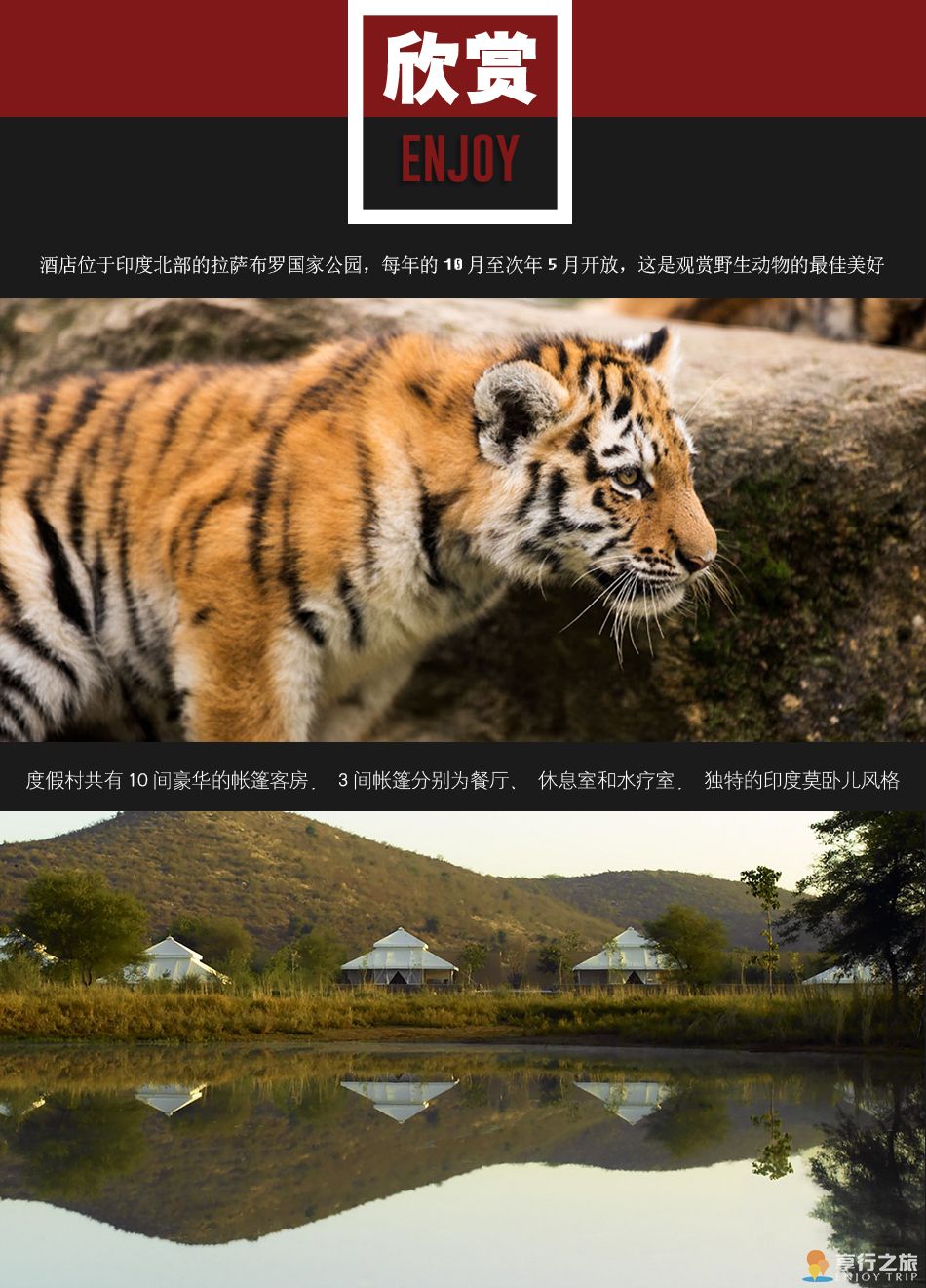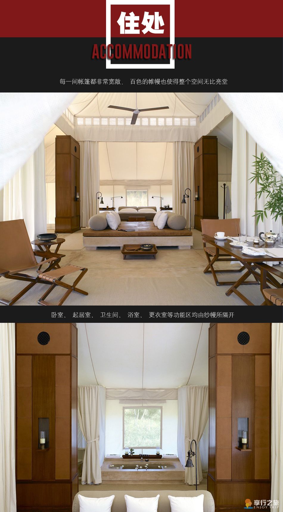 安縵伊卡帳篷度假村位于印度北部的拉薩布羅國家公園,僅于每年的10月至次年5月開放,此時是觀賞野生動物的時機。I Khas在梵語里是“平靜”和“特別的意思”,正如這個名字一樣,這座獨特的度假村共有10間帳篷客房,另有3間帳篷分別為餐廳、休息室和水療室,都是獨特的印度莫臥兒風格。住在這里,你將近距離感受北印度的野性之美。