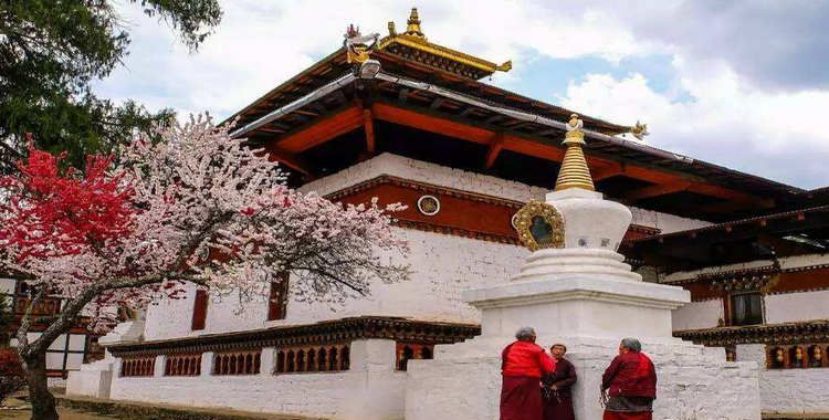 早餐后參觀坐落于父親河和母親河交匯處的普納卡宗(Punakha Dzong),不丹的第二座城堡,她是公認的全國美麗的宗堡,特別當春季,環(huán)繞宗堡的藍紫色藍花楹盛開的時候。它更是不丹佛教圣地之一,海拔1463米,由沙布東一世于公元1637年修建,原是不丹的舊都,直到1955年才遷都廷布 。同時,這里還是不丹佛教手稿、神圣的佛教名人名冊、規(guī)格各異的宗教畫和逼真的宗教名人肖像的收藏地。在顏色瑰麗的城堡里,保存著古代不丹沙布東的遺體,遺體以香料防腐。安放遺體的房間,除了國王和某些高 級喇嘛外,誰都不能進去。許多宣傳不丹的書籍中,都是用普納卡宗做的封面。